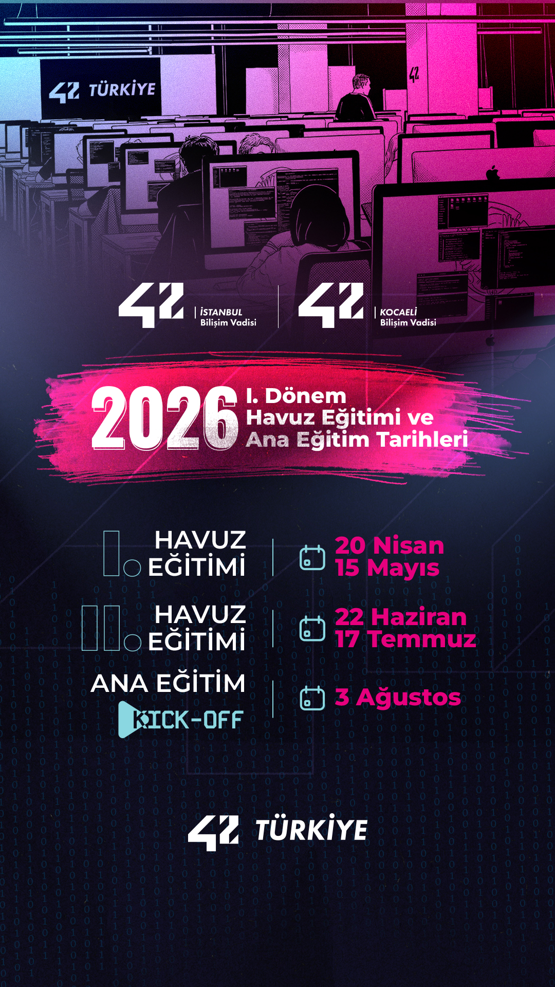 42 Türkiye, ülkemizin nitelikli yazılım geliştirici ihtiyacının karşılanmasına katkı sağlamayı ve Milli Teknoloji Hamlesi hedefleri doğrultusunda insan kaynağının geliştirilmesini desteklemeyi amaçlayan bir programdır. İlgili programa dair detaylı bilgilere erişmek için tıklayınız.